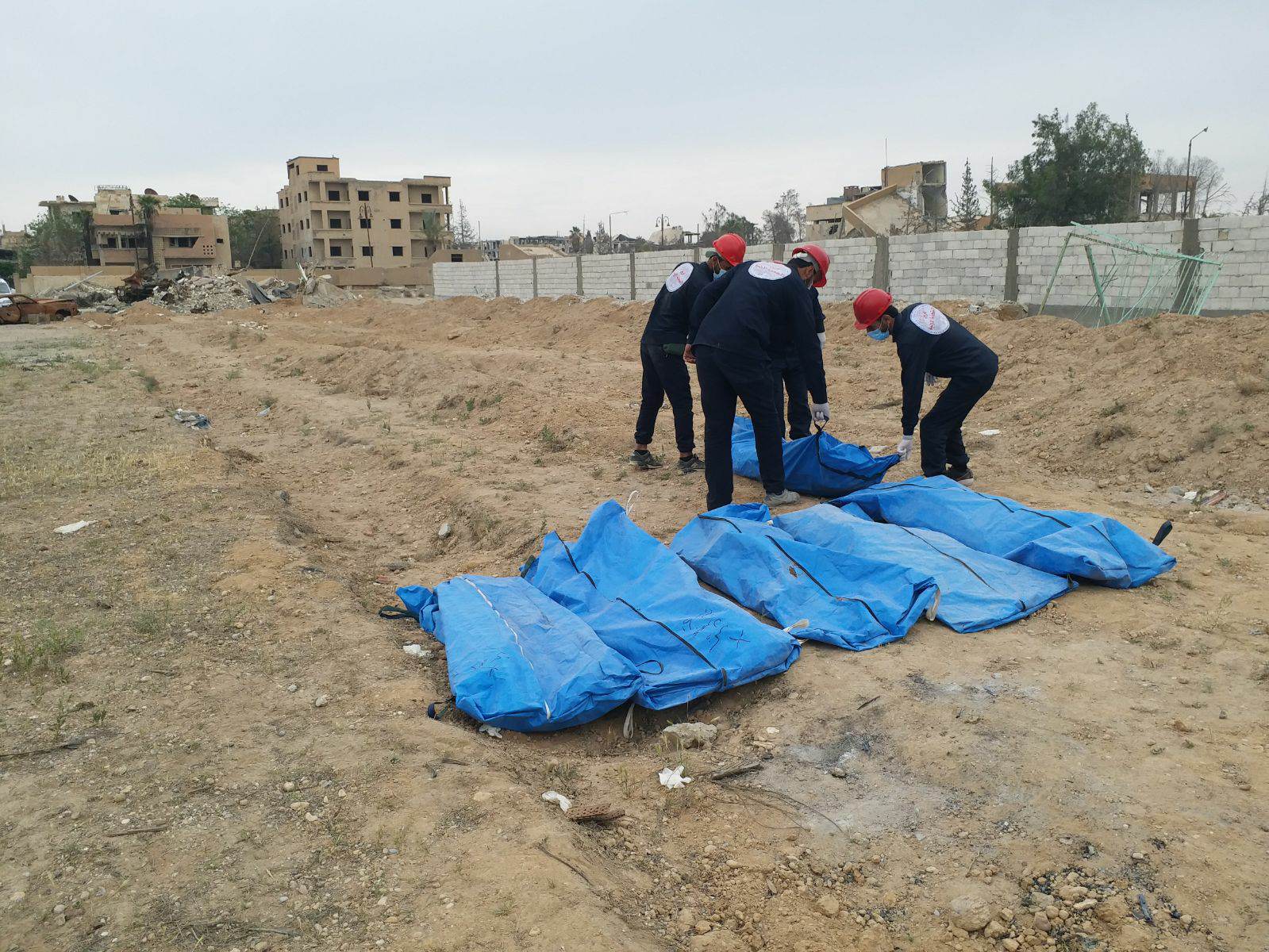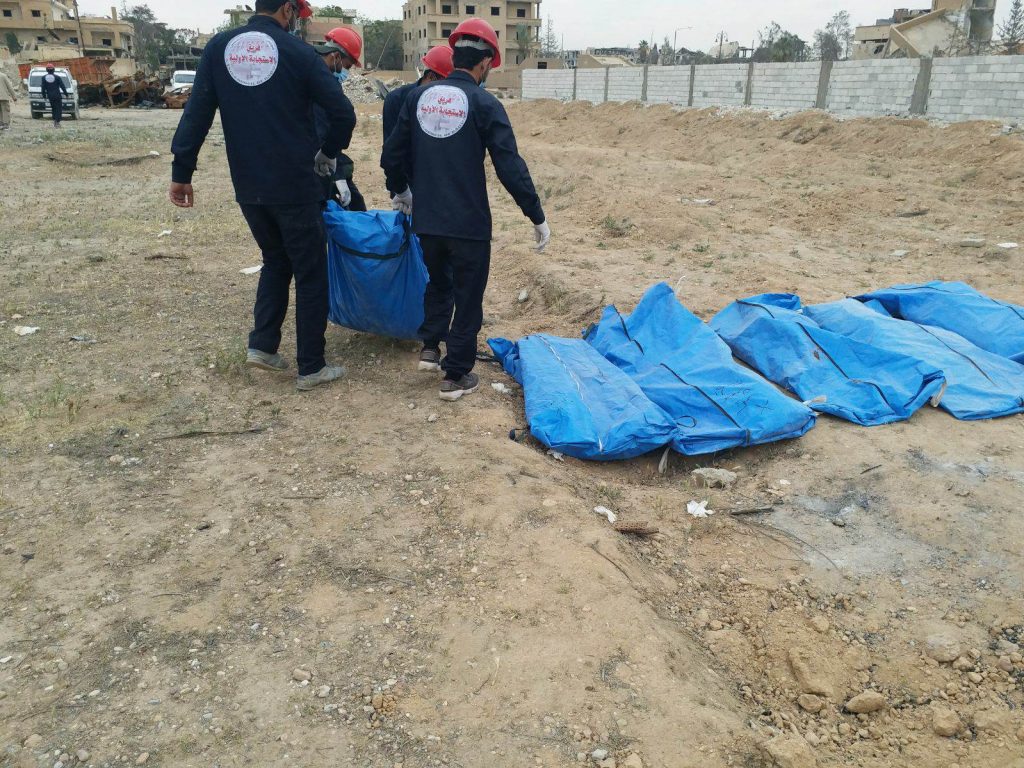 ولا تزال عملية البحث جارية عن المدفونين داخل مقبرة الملعب، وسيتم نقل رفاتهم إلى مقبرة حطين، والسماح للأهالي بالتأكد من ذويهم عن طريق المعنيِّين من مكتب إعادة الإعمار في محافظة الرقة.