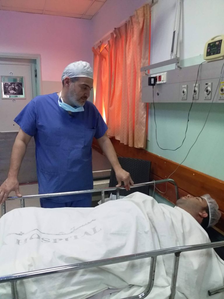 يوم عصيب على رئيس قسم جراحة التجميل والترميم بمستشفى الجامعة الأميركية في بيروت، والذي جاء لقطاع غزة الجمعة الماضي 11 مايو/أيار 2018. بدأه منذ الصباح الباكر في غرفة العمليات مُتنقلاً بين المصابين، مُحاولاً بكل ما لديه من خبرة وإمكانات، علاج وترميم أطراف المصابين.