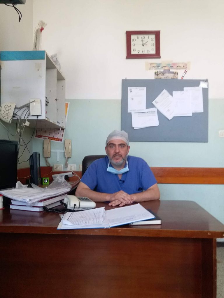 وصلنا إلى المشفى الثاني في محافظة شمال قطاع غزة، التي شهدت أكبر عدد إصابات في مسيرات العودة الإثنين 14 مايو/أيار 2018، بالتزامن مع انتهاء الطبيب “أبو ستة” من عملية جراحية لأحد مصابي مسيرة العودة.. وبابتسامة، قابلَنا ومازحنا بالقول: “تفضَّلوا نشربكون شاي”، وقد أشار بيديه إلى غرفة العمليات.