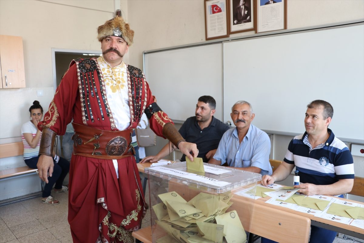 وتكرر المشهد في ارتداء الملابس التقليدية بولايات جناق قلعة وآيدن وكوتاهية وقسطموني وشانلي أورفة وهكاري، في أثناء عملية الاقتراع.