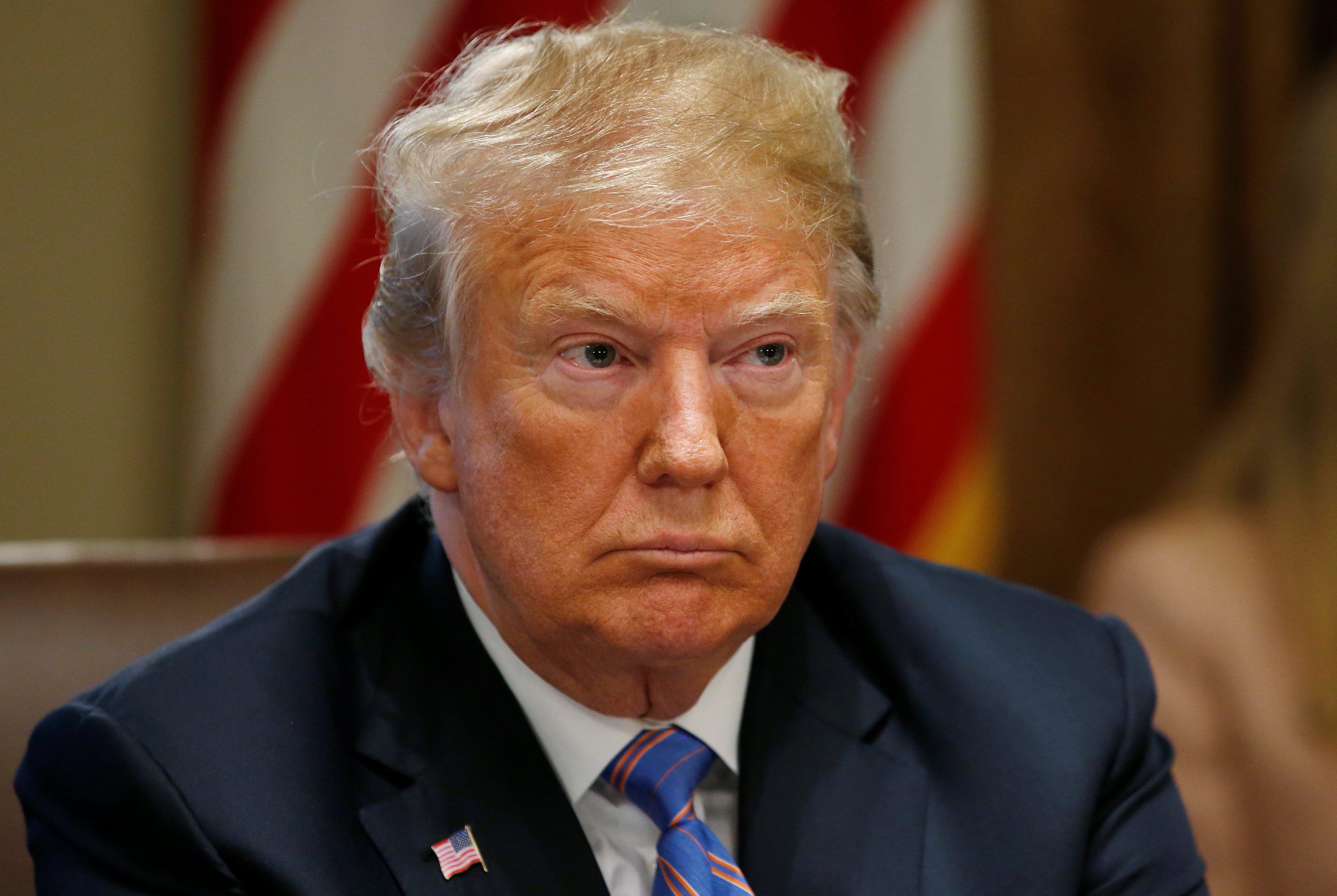 U.S. President Donald Trump listens during a cabinet meeting at the White House in Washington, U.S., July 18, 2018. REUTERS/Leah Millis