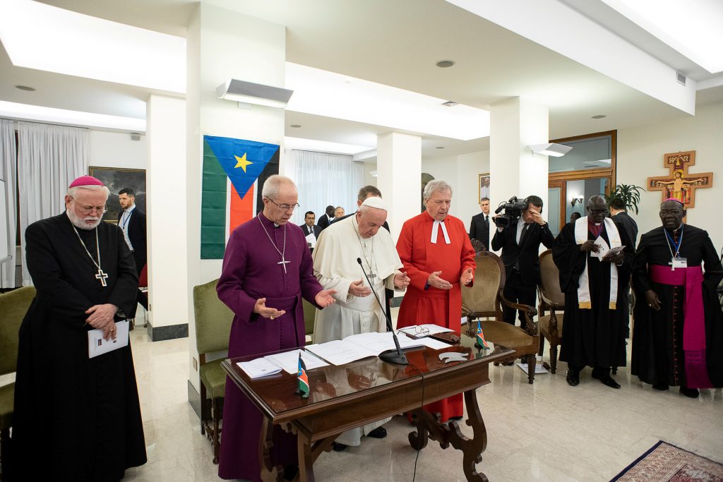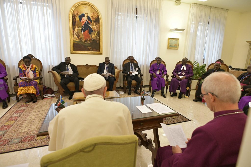 وجمع الفاتيكان زعماء جنوب السودان على مدى 24 ساعة من الصلاة والوعظ بمقر إقامة البابا، في محاولة لرأب الانقسامات المريرة قبل التشكيل المقرر لحكومة وحدة.