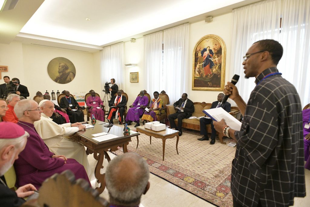 وفي خطاب معَد أُلقي في وقت سابق من الخميس، قال بابا الفاتيكان فرنسيس إن شعب جنوب السودان منهك بسبب الحرب، وإن على القادة واجب بناء دولتهم الفتية بالعدالة. كما كرر رغبته في زيارة البلاد مع زعماء دينيين آخرين لتوطيد السلام.