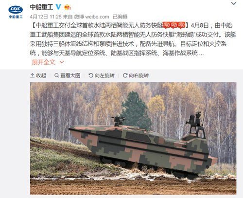وقالت شركة بناء السفن، المملوكة للحكومة الصينية، حسب موقع The Verge الأمريكي، إن النموذج الأوليَّ لمركبة الهبوط قد اختُبر بنجاح، وإنها المركبة الأولى من نوعها في العالم. يبلغ طول المركبة 12 متراً، ويمكنها الوصول إلى سرعة 50 عقدة في الساعة بالمياه، و20 كيلومتراً في الساعة على اليابسة.