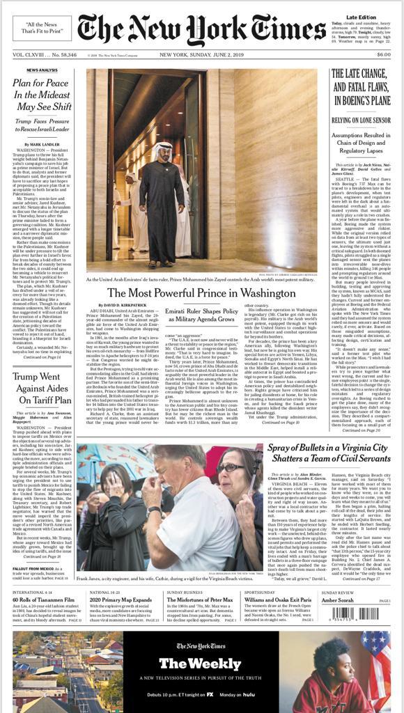 بعد ثلاثين عاماً، بات الأمير محمد، ولي عهد أبوظبي والحاكم الفعلي للإمارات العربية المتحدة والبالغ من العمر ثمانية وخمسين عاماً، هو الزعيم الأقوى في العالم العربي، كما يرى كثيرون. كما أنه واحد من بين أكثر الأصوات الأجنبية نفوذاً في واشنطن، حيث يحض الولايات المتحدة على تبني مقاربته في التعامل مع المنطقة، وهي المقاربة التي تميل بشكل متزايد نحو العسكرة والقتال.
