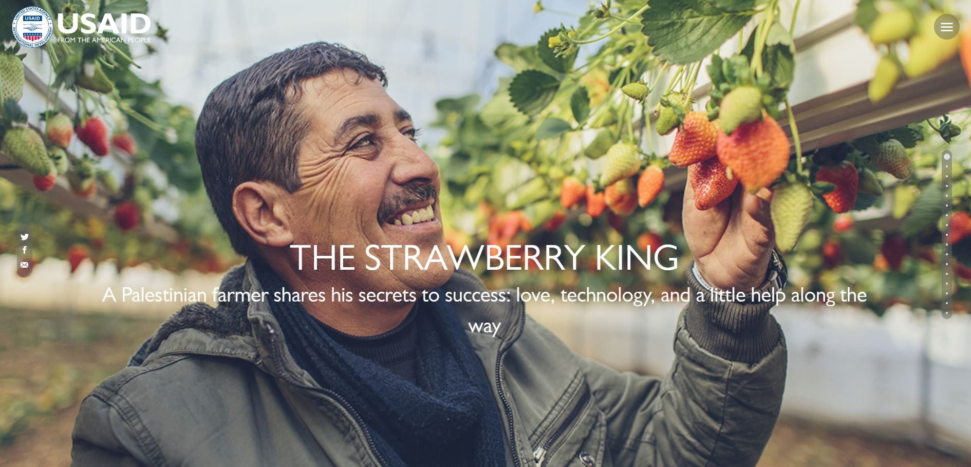 ثم زاره موظفو الوكالة الأمريكية للتنمية الدولية في عام 2013، لإبلاغه بمشروع مساعداتٍ جديد قيد التنفيذ، لتعزيز زراعة الفراولة في الضفة الغربية.