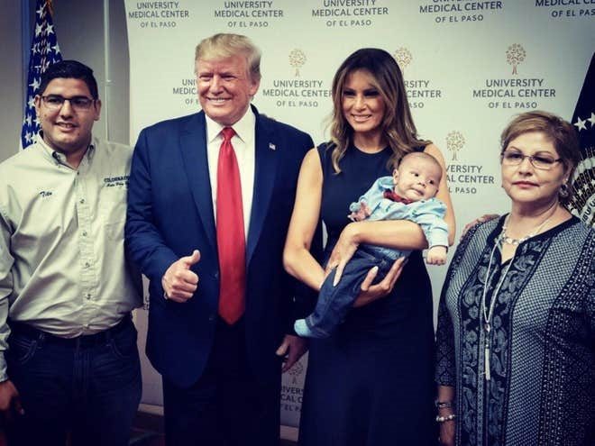 لكن عندما التقى دونالد ترامب وزوجته ميلانيا ترامب، بالرضيع، في المركز الطبي الجامعي في إل باسو، وحملاه وهما يبتسمان لكاميرات المصورين، اعتبر الكثيرون على مواقع التواصل أن ابتسامتهما تعكس لا مبالاة بمصيبة الرضيع.