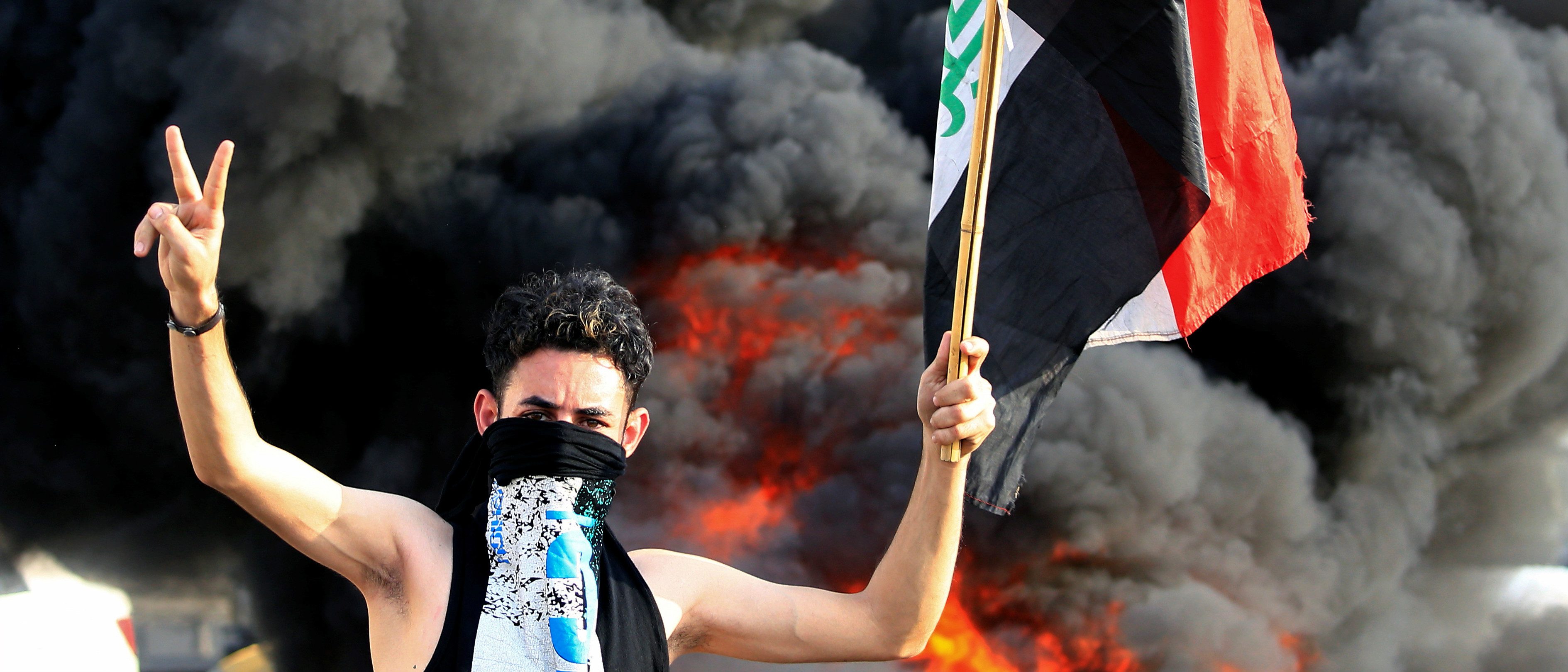 خلفية: تظاهر آلاف العراقيين في ساحة التحرير وسط بغداد ومحافظات أخرى، مطالبين بتوفير الخدمات، وتحسين الواقع المعيشي، وتوفير وظائف، والقضاء على البطالة والفساد المالي والإداري في مؤسسات الدولة.