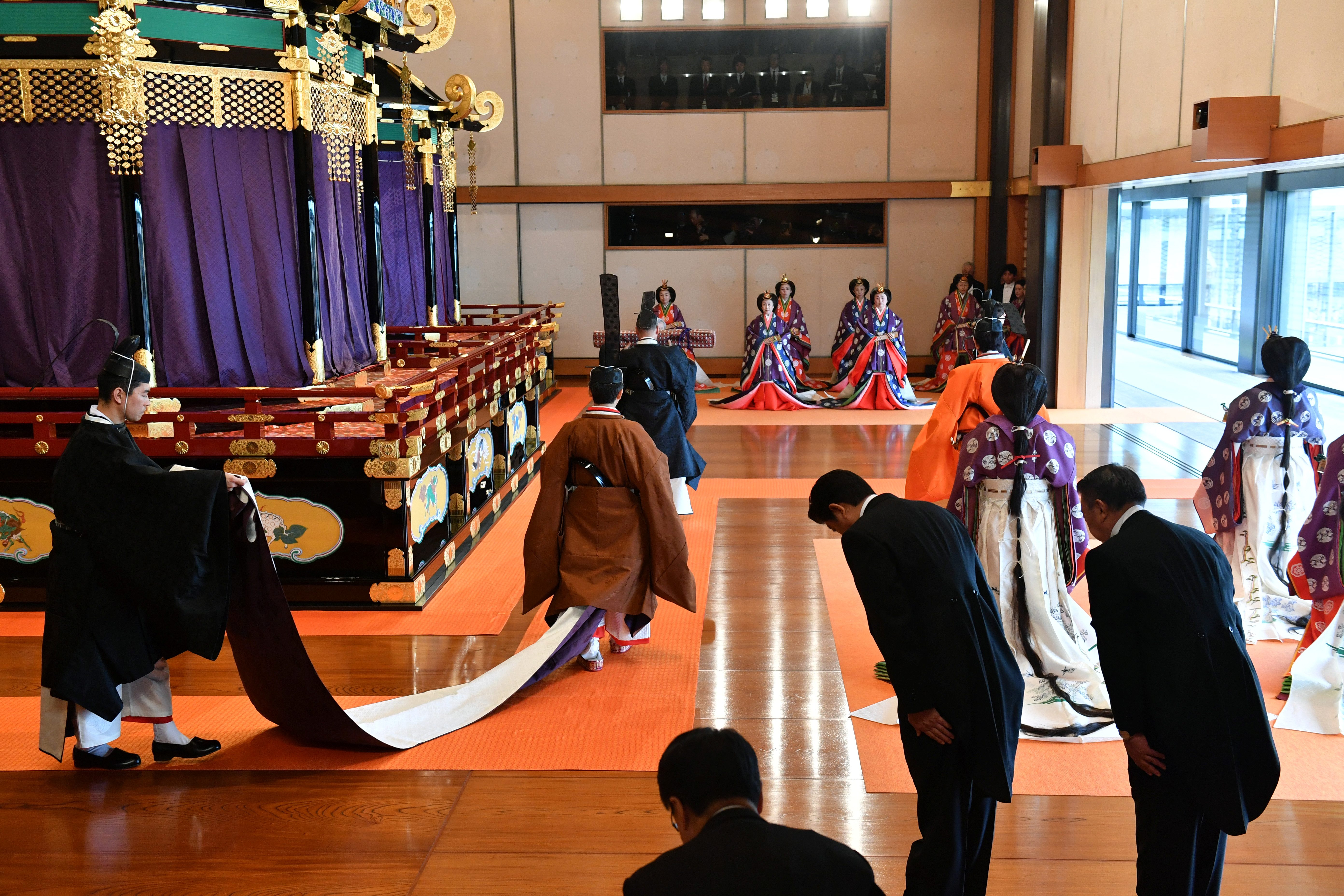 وبدأت سلسلة طقوس التتويج، المستمدة من ديانة الشنتو الأصلية في اليابان، صباح الثلاثاء، 22 أكتوبر/تشرين الأول 2019، وسط هطول غزير للأمطار.
