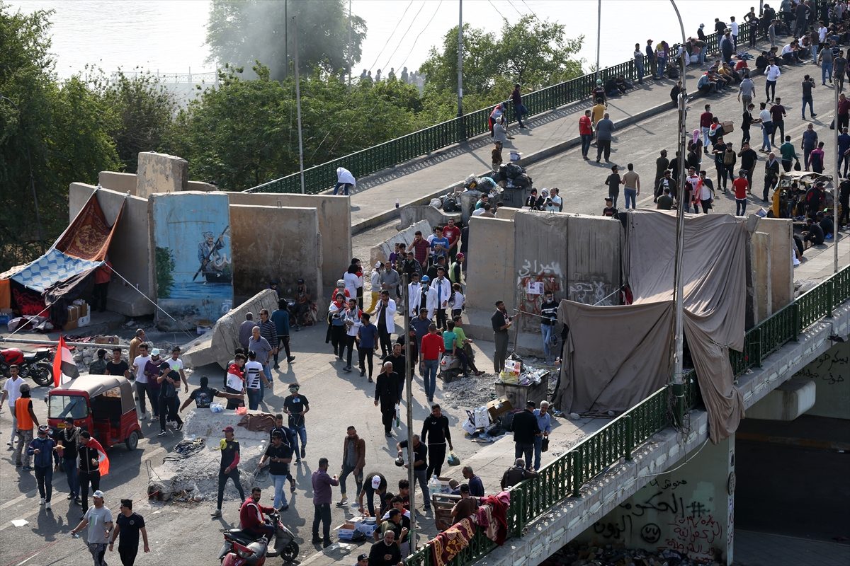 كانت قوات الأمن أبعدت المحتجين من جسري “الأحرار” و”السنك”، الأسبوع الماضي، وقلصت مساحة الاحتجاجات في ساحة “التحرير” والمنطقة الصغيرة المحيطة بها بما في ذلك جسر الجمهورية.