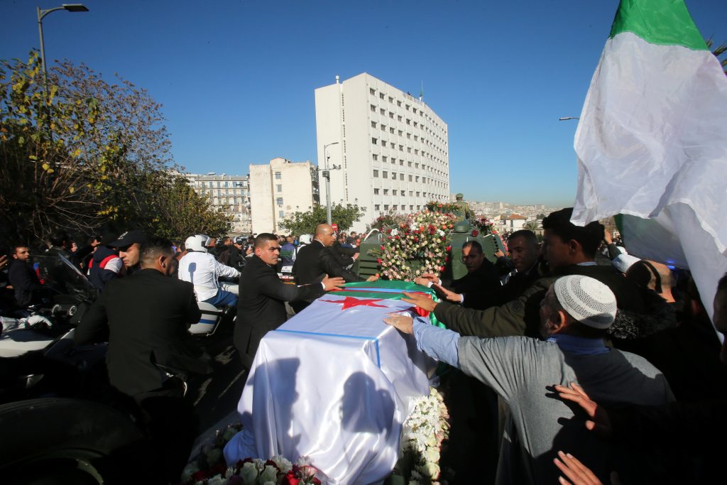 نُقل جثمان رجل الجزائر القوي خلال المرحلة الانتقالية، على متن عربة عسكرية من قصر الشعب بوسط العاصمة، إلى مقبرة العالية، عبر شارع “ديدوش مراد”، الذي اصطف على جانبيه سكان العاصمة وآخرون قدِموا من ولايات أخرى ليودّعوه.