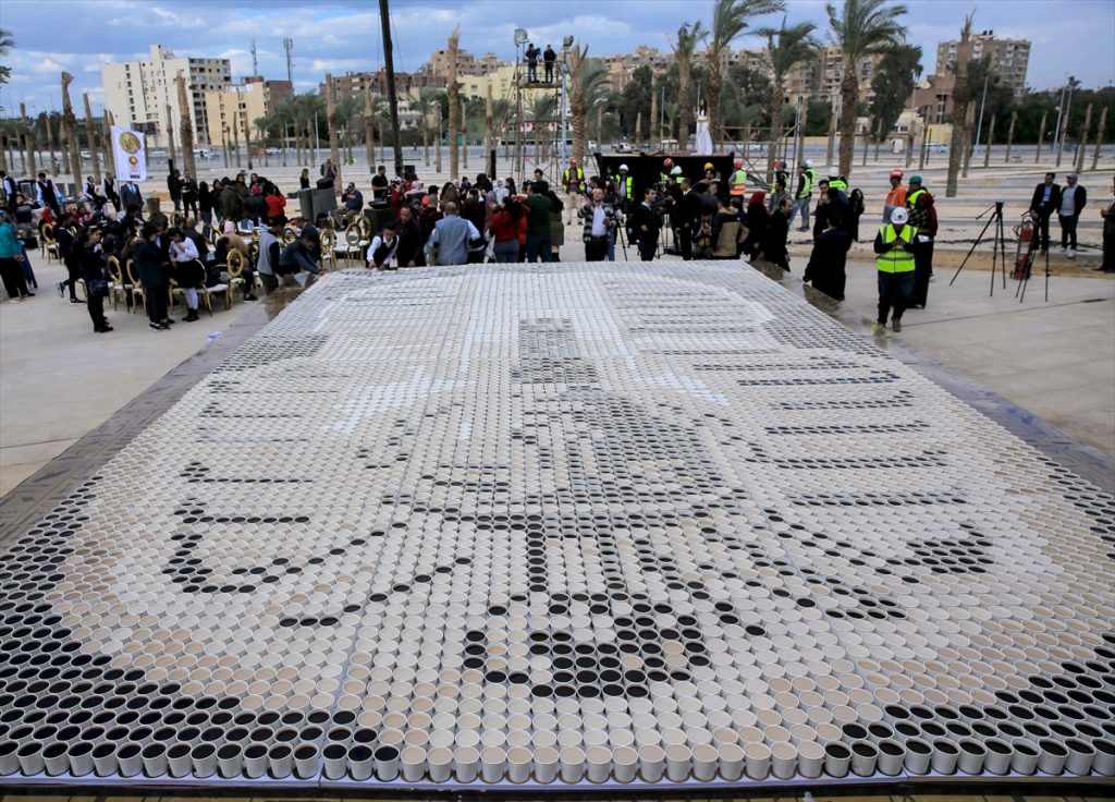 وجاء في وكالة الأنباء المصرية الرسمية: “نجحت مصر في تسجيل رقم قياسي جديد في موسوعة “غينيس” للأرقام القياسية برسم صورة قناع الملك توت عنخ آمون بأكواب القهوة، وذلك باستخدام 7260 كوباً على مساحة 60 متراً، وذلك في احتفالية كبرى بالبهو الخارجي للمتحف المصري الكبير”.