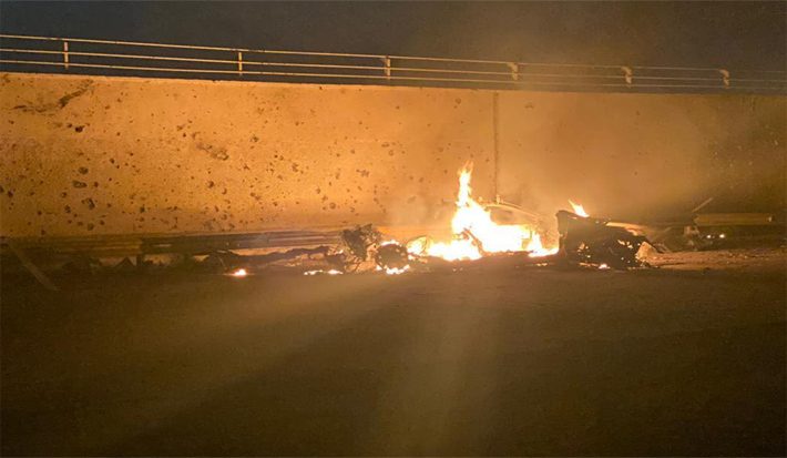 صورة تُظهر السيارة التي قصفتها أمريكا وكانت تقل سليماني – مواقع التواصل