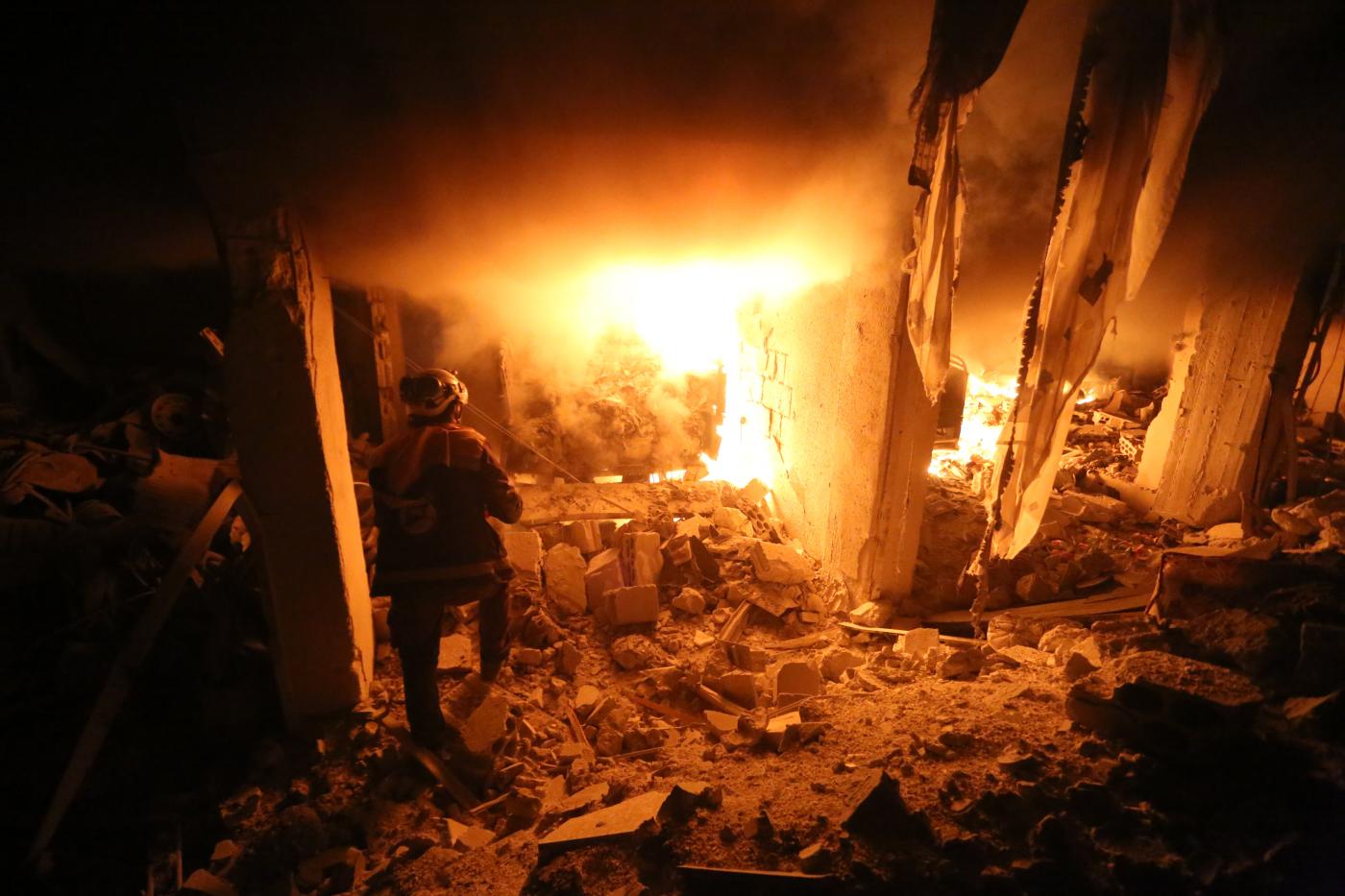 تُظهر الصور المنشورة على الإنترنت المستشفى وقد دُمر بالكامل، واحترق جراء الغارة التي ضربت منشآتٍ طبيةٍ ليلة الأربعاء الماضي 29 يناير/كانون الثاني 2020.