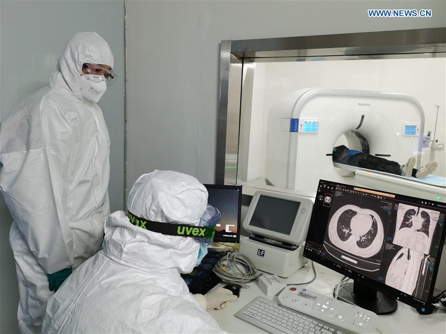 أطباء في مستشفى ليشانشان يفحصون أحد المرضى بالكورونا/ وكالة الأنباء الصينية