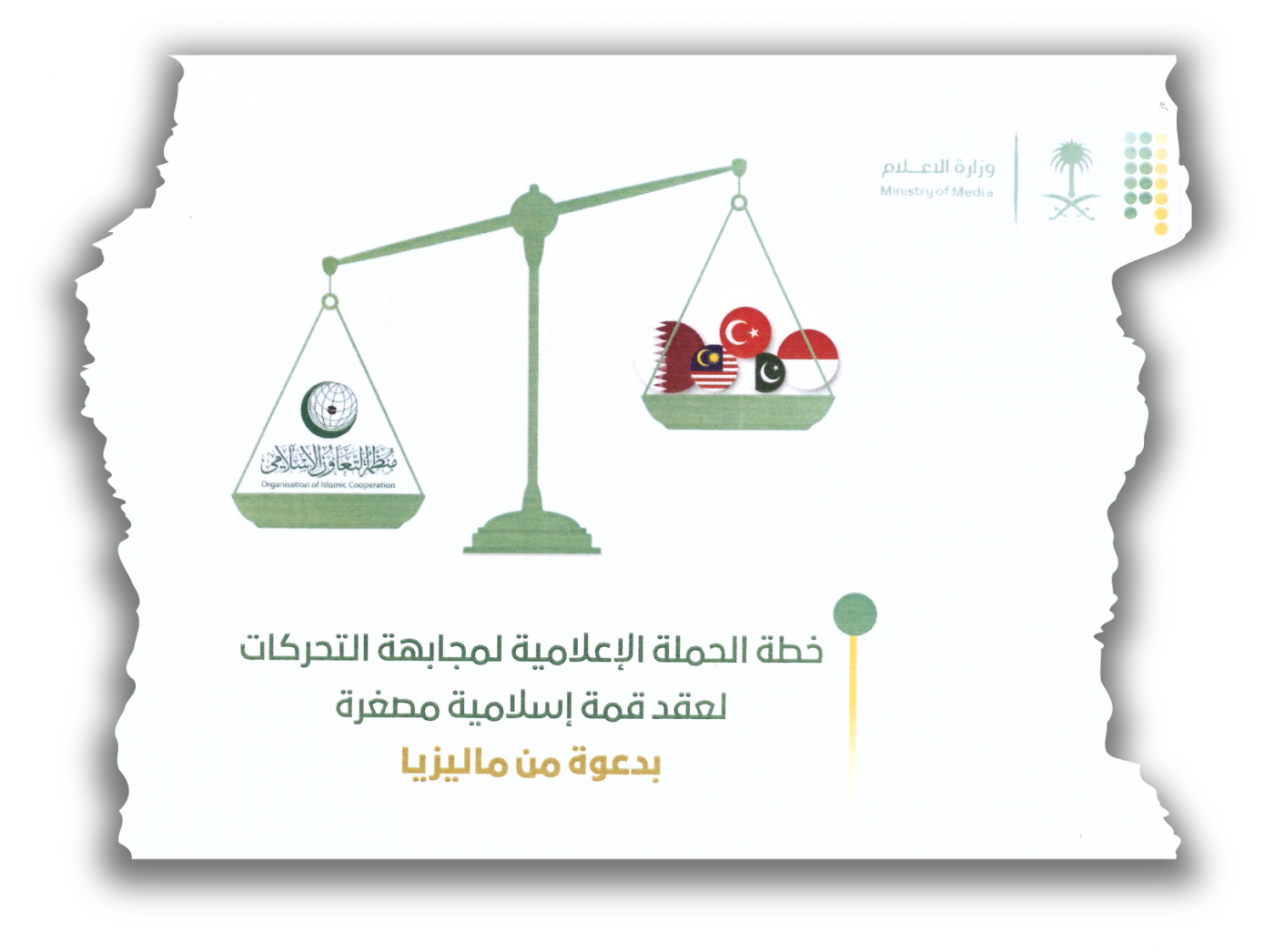 سياق الخبر: هجوم السعودية على القمة الإسلامية في ماليزيا جاء تحسباً من أن يكون هذا الاجتماع على حساب قمة التعاون الإسلامي، وهو ما سيسحب البساط من تحت أقدام المملكة. وبحسب وثيقة الوزارة، التي حصل عليها الموقع البريطاني، فإنّ أهداف الحملة هي: تسليط الضوء على دور منظمة التعاون الإسلامي في خدمة أهداف الأمة الإسلامية، والتقليل من شأن قمة ماليزيا، وإلقاء الضوء على حجم المساعدات التي قدّمتها السعودية لدول العالم الإسلامي، خاصةً فلسطين.