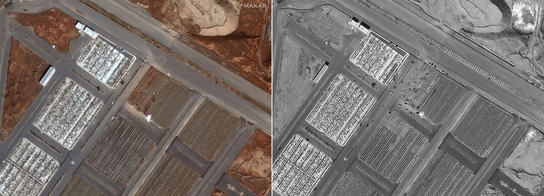 قال أحد كبار محللي الصور في شركة Maxar Technologies -ومقرها ولاية كولورادو الأمريكية- إنَّ حجم الخنادق والسرعة التي حُفِرَت بها يمثلان معاً خروجاً واضحاً عن ممارسات الدفن السابقة التي تنطوي على مساحات فردية أو عائلية في الموقع.