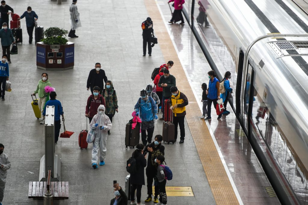 سكان من مدينة ووهان خلال سفرهم منها بعد إنهاء إغلاق المدينة – رويترز