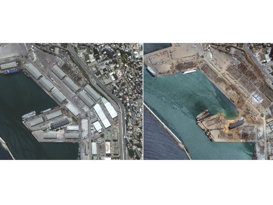 ففي صور صادمة نشرتها وكالة رويترز، ملتقطة من الأقمار الصناعية، تُظهر ما أحدثه التفجير في يابسة الميناء، حيث غير ملامح الميناء عندما اختفى جزء كبير في الماء نتيجة قوة الانفجار.