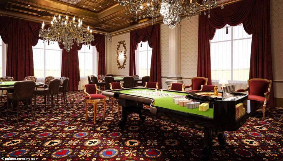 إذ تضمَّن الفيديو صوراً ثلاثية الأبعاد للأجزاء الداخلية من القصر، استناداً إلى مخططات وصور مسربة. فيما قال نافالني، إن القصر يحتوي على أثاث فاخر، من ضمنه أريكة تساوي 20 مليون روبل (264 ألف دولار)، أي أكثر بكثير من متوسط سعر أي شقة بغرفتين في روسيا.