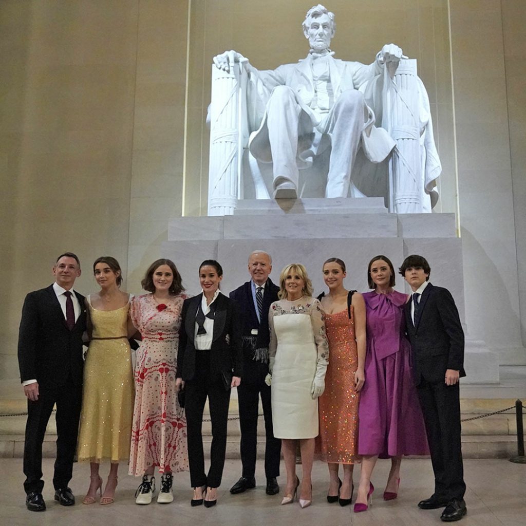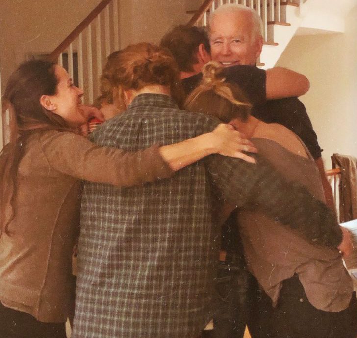 كان أطفال وأحفاد بايدن معه عندما علِم أنه حصل على الـ270 صوتاً انتخابياً اللازمة للفوز بالرئاسة في نوفمبر/تشرين الثاني. وتشاركت العائلة كلها عناقاً احتفالياً بعد إعلان النصر.