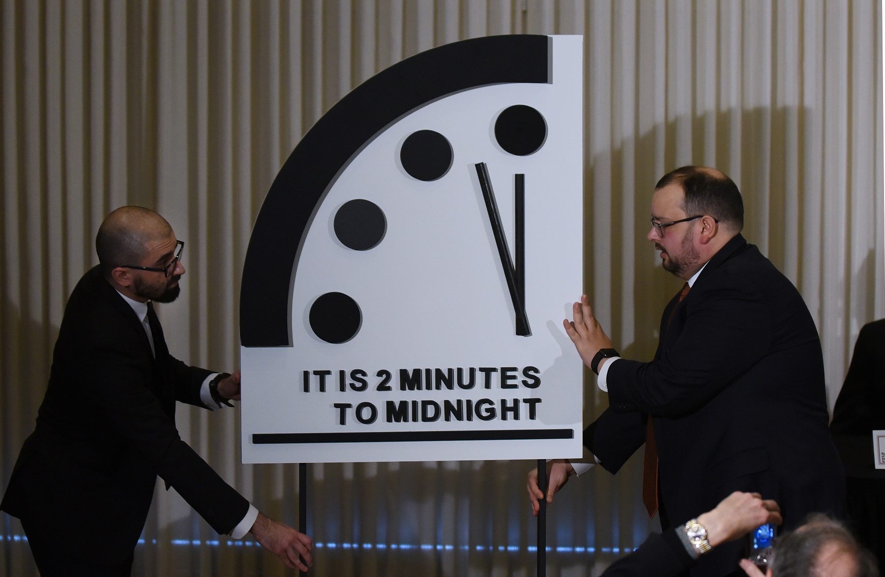 تُنذر هذه الساعة بقرب نهاية العالم، بسبب السباق الجاري بين الدول النووية/ رويترز