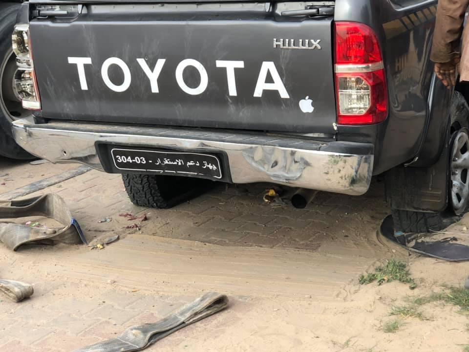 السيارة التي كانت تقل أفراد من جهاز دعم الاستقرار في طرابلس