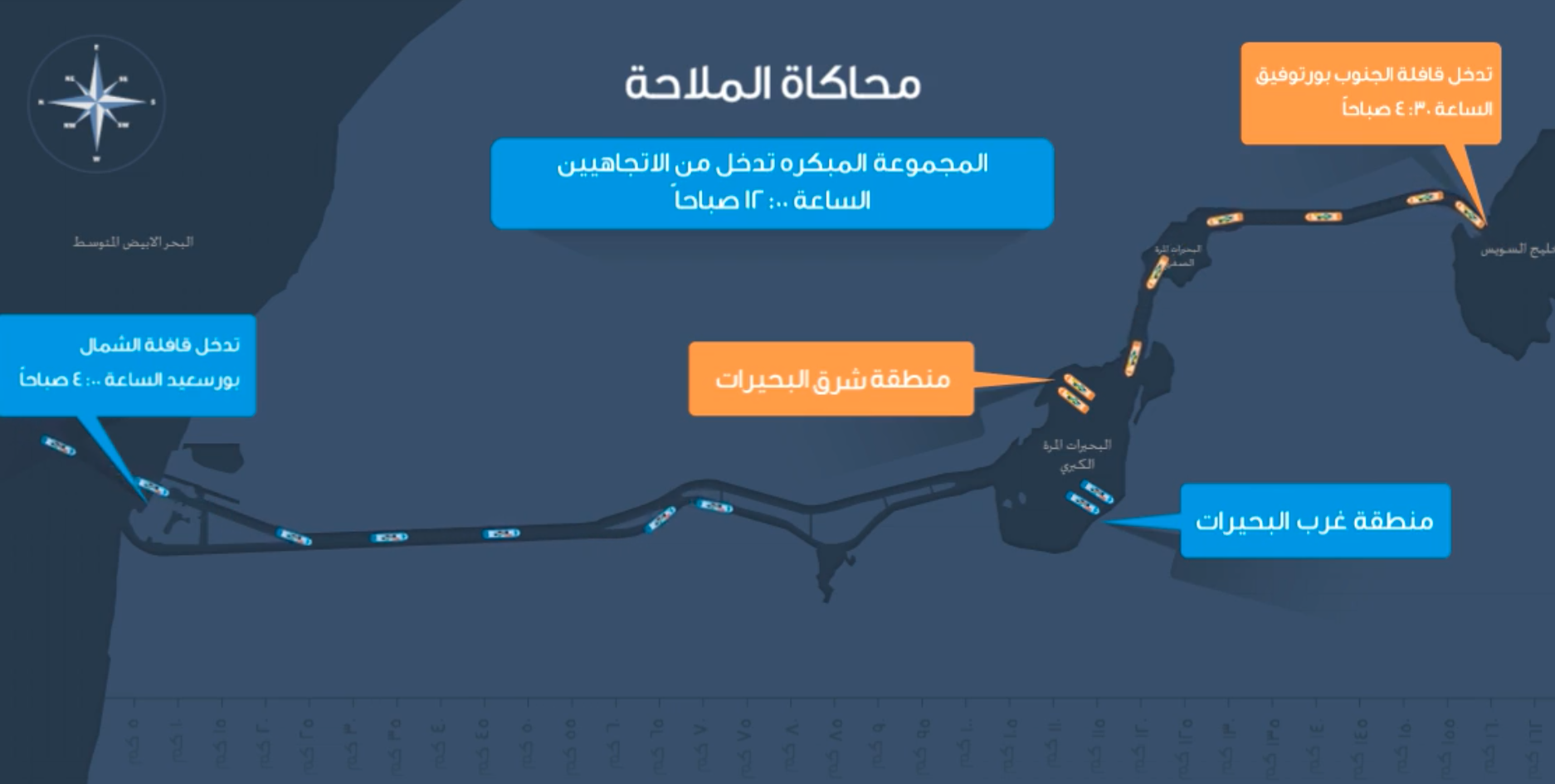 السفن التالية للسفينة “إيفرغيفن” في القافلة أسقطت مراسيها في المجرى الملاحي. وفي غضون ذلك، تجمعت نحو 30 سفينة متجهة جنوباً كانت دخلت بالفعل من البحر المتوسط، في منطقة البحيرات المرة، وهي إحدى البقع العريضة القليلة في قناة السويس. وتكدست بالفعل 24 سفينة إضافية في انتظار دخول القناة عند مدخلها الشمالي في بورسعيد.