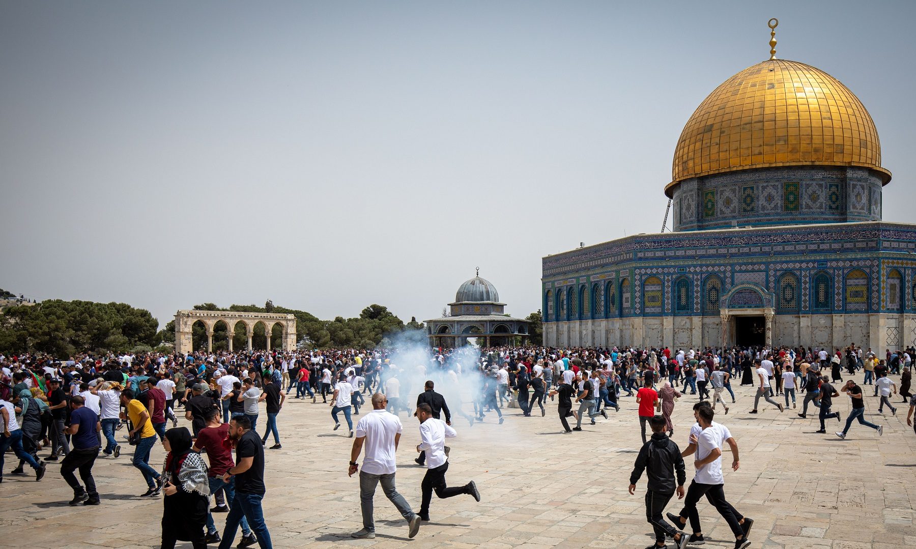 كما قال شهود عيان لـ”الأناضول”، إن قوات الشرطة الإسرائيلية اقتحمت المسجد الأقصى، واستهدفت المصلين بوابل من الرصاص المعدني والمطاطي وقنابل الغاز المسيل للدموع، ما أدى إلى إصابة فلسطينيين بجروح واختناق.