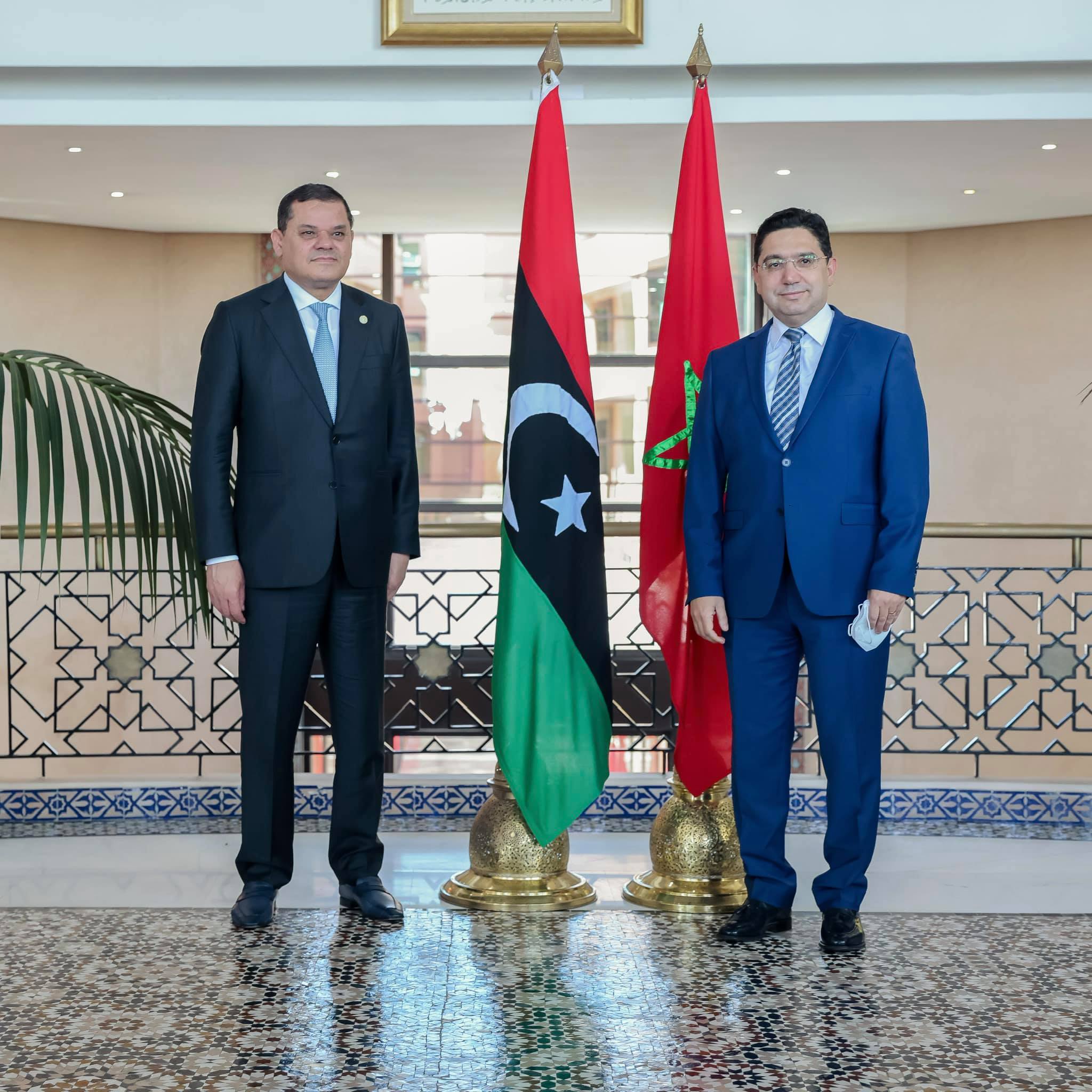 وصل الأحد 27 حزيران/يونيو الجاري، رئيس حكومة الوحدة الوطنية في ليبيا، عبدالحميد الدبيبة، في زيارة رسمية للمغرب، حظي فيها، الإثنين 28 حزيران/يونيو 2021، بلقاء مع رئيس الحكومة المغربية، سعدالدين العثماني، كما أنه التقى قبل ذلك بوزير الشؤون الخارجية والتعاون الإفريقي والمغاربة المقيمين بالخارج، ناصر بوريطة.