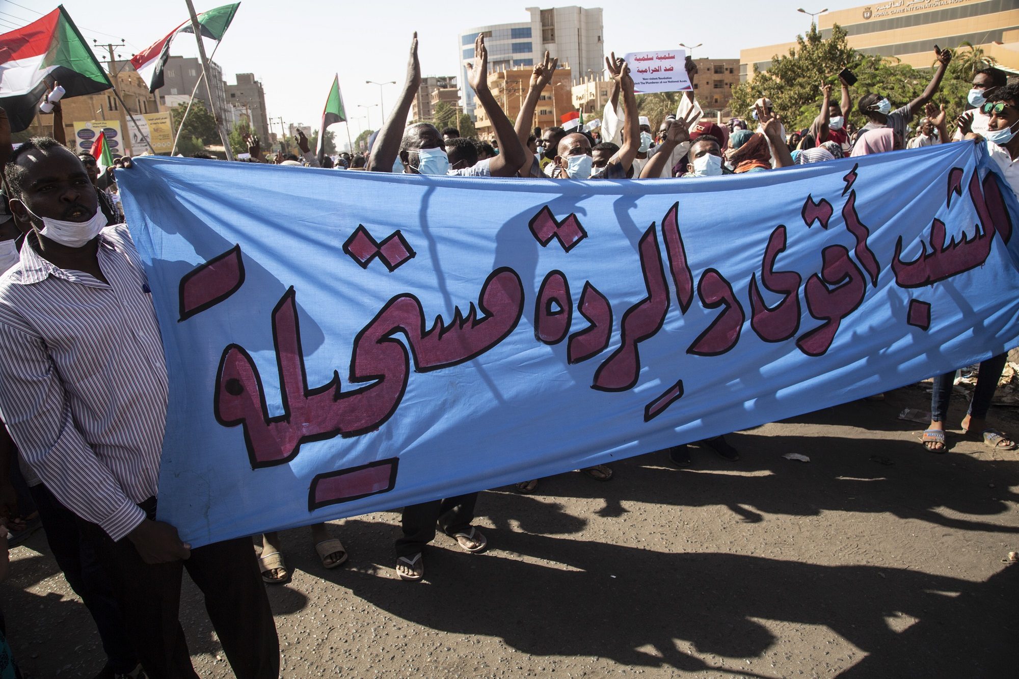 وطالب المحتجون، الذين ساروا في أحياء بأنحاء العاصمة ومدينتي بحري وأم درمان، بتسليم كامل السلطة لسلطات مدنية.