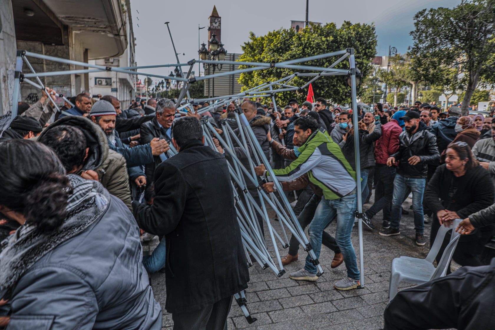 وكانت مبادرة “مواطنون ضد الانقلاب” قد أعلنت عن خطة تصعيدية جديدة بعد فضّ الاعتصام بالقوة، في الذكرى 11 لاندلاع شرارة الثورة التونسية، في 17 من ديسمبر/كانون الأول 2021.