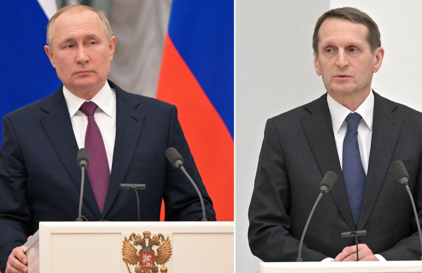 رئيسَ جهاز المخابرات الخارجية لروسيا، سيرغي ناريشكين، والرئيس فلاديمير بوتين - Getty Images