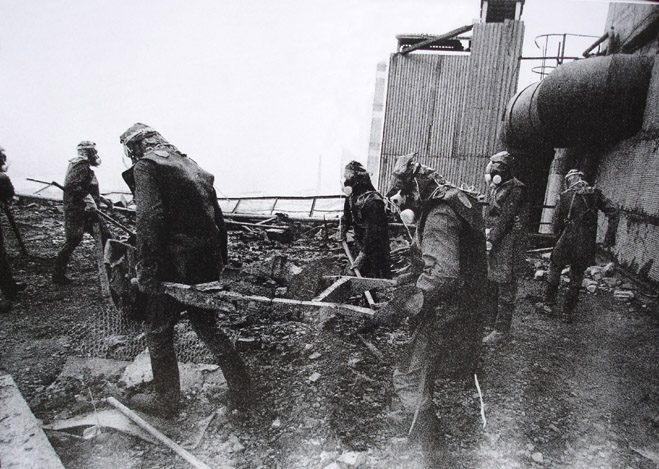 يشكل الإشعاع الخارج من تحت هيكل المفاعل المدمر خطراً كبيراً على الجنود، طالما أنهم بقوا في المنطقة شديدة الإشعاع، والتي يجب التخلي عن بعض أجزائها دون سكن لمئات السنين.