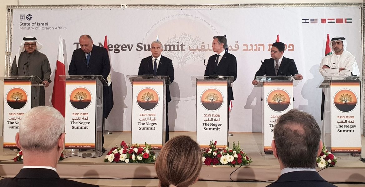 والإثنين 28 مارس/آذار 2022، اجتمع كبار الدبلوماسيين في الولايات المتحدة وأربع دول عربية في إسرائيل لإظهار الوحدة ضد إيران، لكنهم استغلوا الاجتماع النادر في “قمة النقب” للضغط على إسرائيل من أجل إحياء عملية السلام المتوقفة منذ فترة طويلة مع الفلسطينيين، وفق ما ذكرته رويترز.