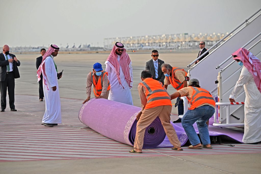 وكان أيضاً في استقبال بايدن، إلى جانب الأمير خالد الفيصل، أمير منطقة مكة المكرمة، التي تضم مدينة جدة، وفد يضم سفيرة السعودية لدى الولايات المتحدة ريما بنت بندر آل سعود.