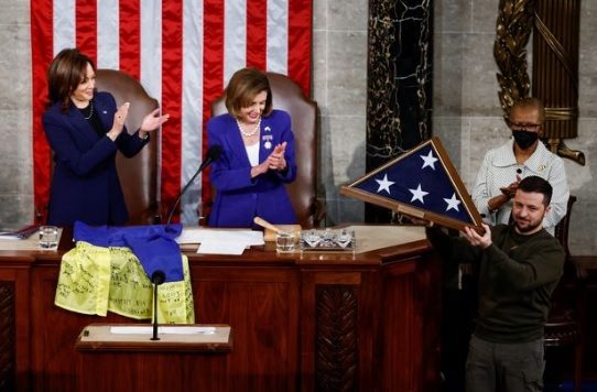 إلى ذلك، هبّ أعضاء في مجلسي النواب والشيوخ من كلا الحزبين مراراً للهتاف، تأييداً لأجزاء من الخطاب الذي ألقاه زيلينسكي باللغة الإنجليزية، مثل قوله “أوكرانيا متمسكة بخطوط (القتال)، ولن تستسلم أبداً”، مشبها معركة بلاده ضد قوات موسكو بالمعارك الكبرى في الحرب العالمية الثانية وبالثورة الأمريكية.