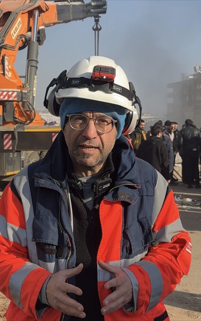 كانت عمليّات البحث عن ناجين لا زالت مستمرّة أمام أحد المربّعات السكنيّة التي تهدّمت بالكامل في كهرمان مرعش، عندما قابلنا “عمّار غوزي” وهو طبيب ألماني من أصل سوري.