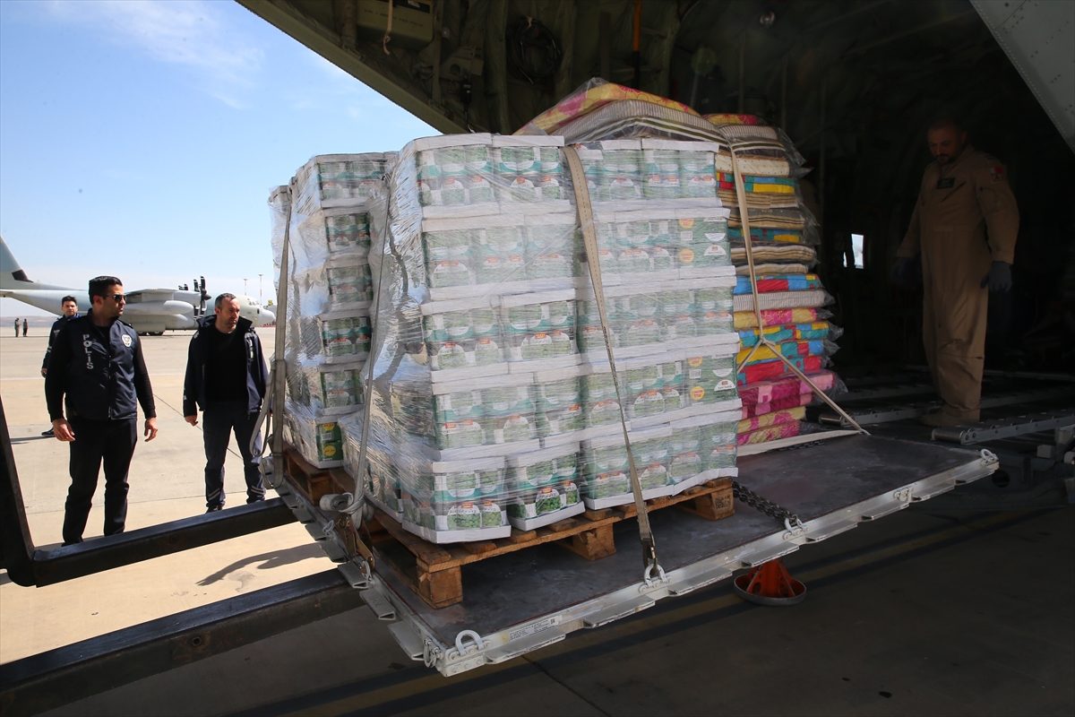 إذ قال مراسل الأناضول إن السلطات المعنية أشرفت على إنزال المساعدات من الطائرتين ونقلها إلى المناطق المتضررة بالشاحنات.