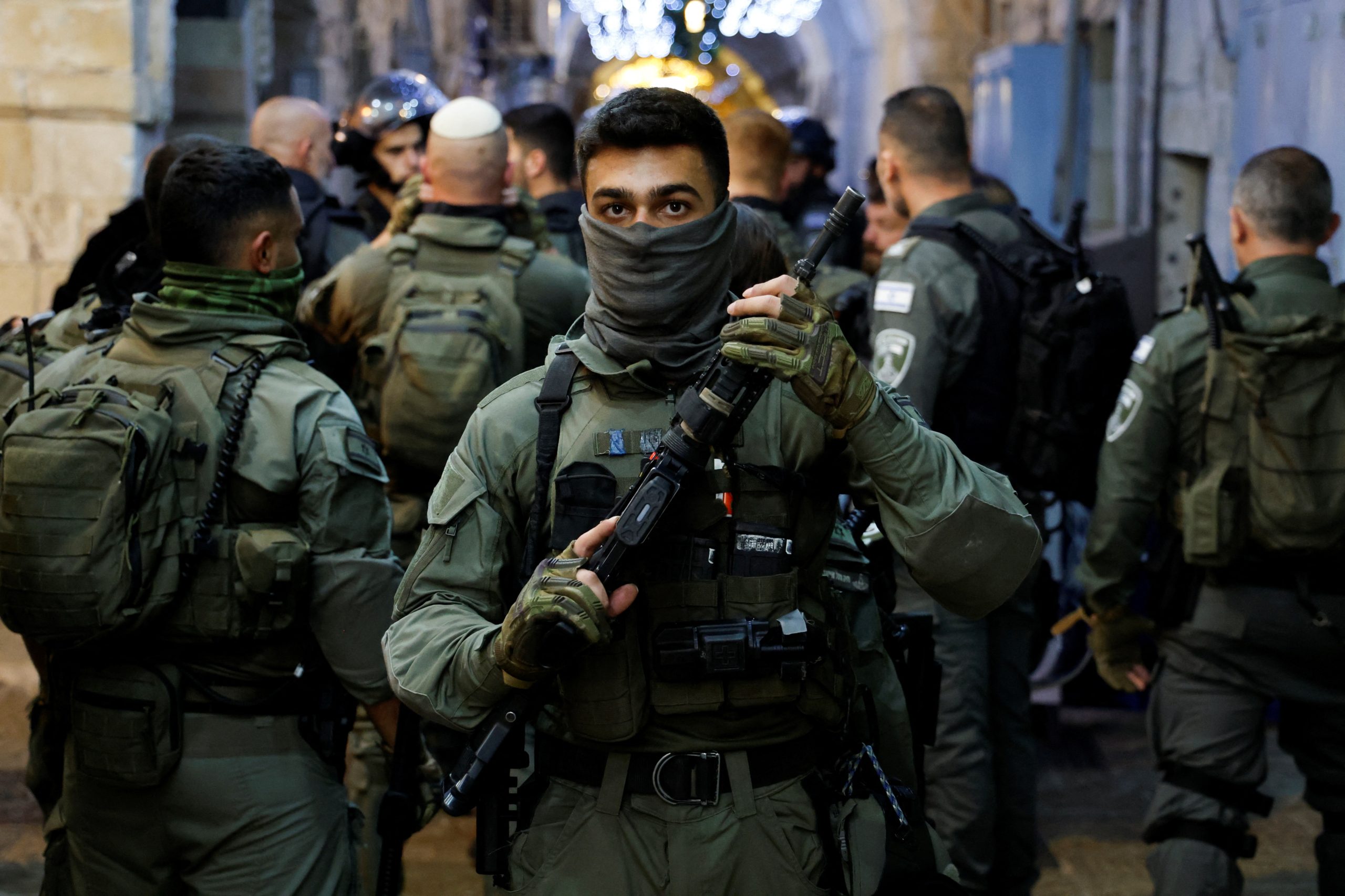 واقتحمت قوات كبيرةٌ المسجد الأقصى من بابي السلسلة والمغاربة قبل أن تنتهي صلاة تراويح اليوم الرابع عشر من رمضان، فيما منعت المصلين من إكمال صلاتهم، وحاصرت المصلى القبلي؛ لمنع أي محاولة للاعتكاف.