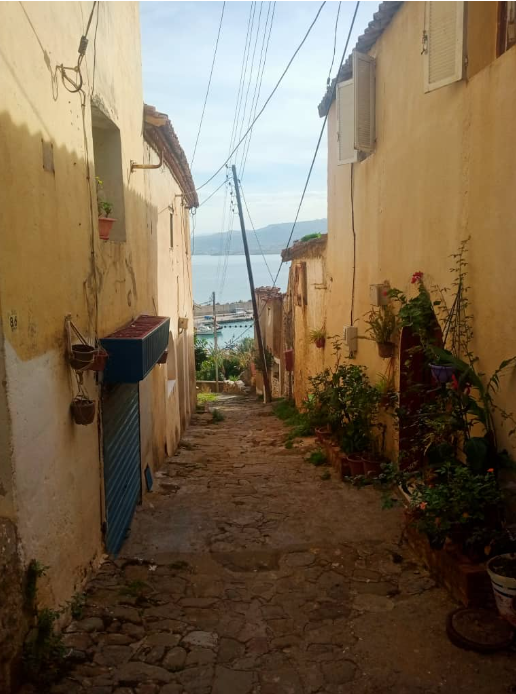 وسط سيرنا في الأزقة المزينة بالأزهار المختلفة والعريش (نوع من العنب ينمو في البيوت)، قابلنا بيتاً مهجوراً قريباً من الواجهة البحرية للقصبة، يقال إن مالكه كان خير الدين بربروس، أشهر البحارين العثمانيين الذي حكموا في الجزائر إبان حقبة الخلافة العثمانية.