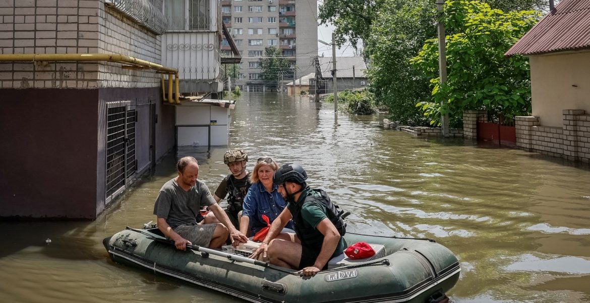 وانهار جزء من سد كاخوفكا الضخم الذي يعود إلى الحقبة السوفييتية ويقع في منطقة خاضعة للسيطرة الروسية في الساعات الأولى من صباح يوم الثلاثاء؛ مما أدى إلى فيضانات في مساحات شاسعة من منطقة حرب وتهديد حياة عشرات الآلاف وسلامتهم.