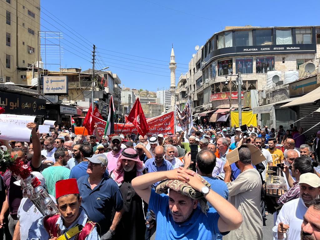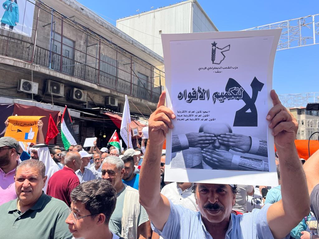شارك مئات الأردنيين، الجمعة 28 يوليو/تموز 2023، بمسيرة احتجاجية وسط العاصمة عَمان، للمطالبة بسحب مشروع قانون “الجرائم الإلكترونية” الذي يرونه بمثابة “تضييق على الحريات” و”تكميم للأفواه”.