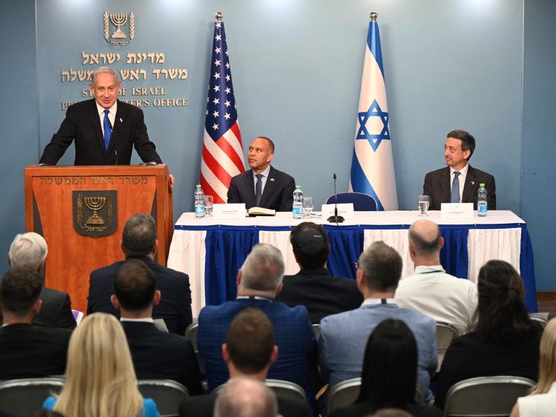 وقال نتنياهو للوفد الذي ضم 24 عضو كونغرس وترأسه حكيم جيفريز، زعيم الديمقراطيين في مجلس النواب الأمريكي ومايكل توشين رئيس “أيباك”: “الشيء الأكثر أهمية هو خلق تهديد عسكري حقيقي لإيران، والشيء الثاني هو استغلاله إذا فشل كل شيء آخر”.