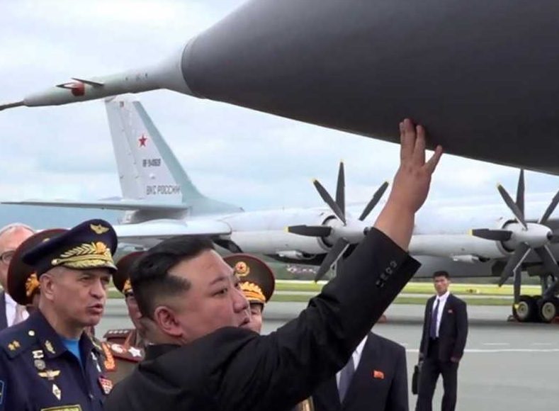 وخلال زيارته لروسيا تفقد كيم القاذفات الاستراتيجية الروسية ذات القدرة النووية والصواريخ الفرط صوتية والسفن الحربية، السبت 16 سبتمبر/أيلول، برفقة وزير الدفاع الروسي سيرغي شويغو.