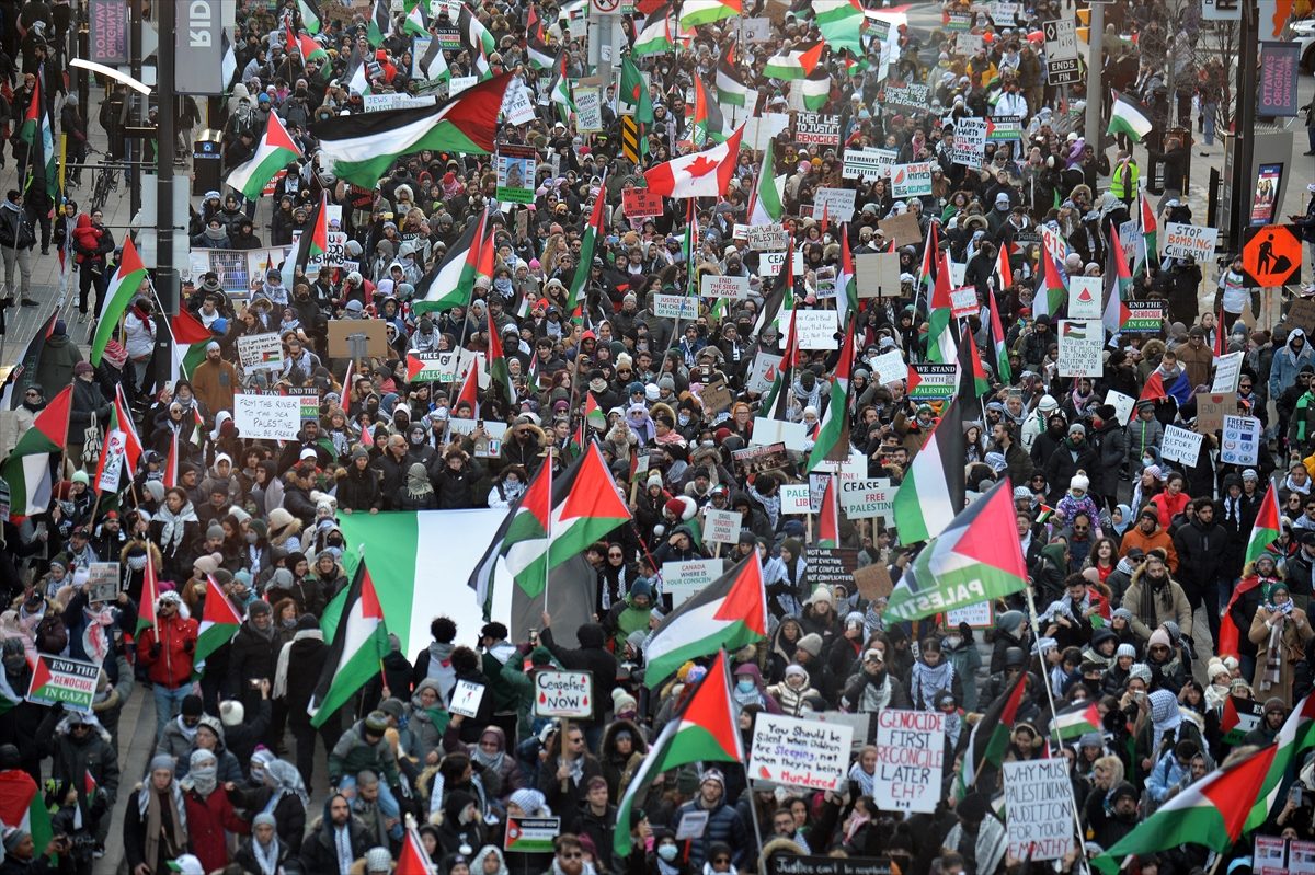 كما أطلق المتظاهرون هتافات تنادي باستقلال فلسطين ووقف “الإبادة الجماعية” في غزة. وتميّزت المسيرة بأنها الأكثر مشاركة حتى الآن بين الفعاليات الداعمة لفلسطين في كندا.