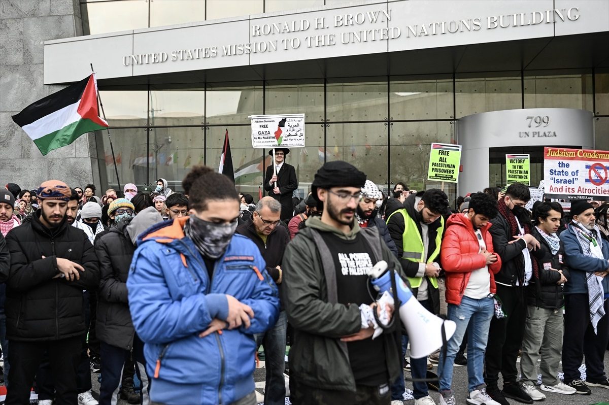 شهدت مدينة نيويورك وقفة أمام مبنى البعثة الأمريكية لدى الأمم المتحدة، احتجاجاً على استخدام واشنطن قبل أيام حق النقض “الفيتو” ضد مشروع قرار في مجلس الأمن يدعو إلى وقف إنساني فوري لإطلاق النار في قطاع غزة.