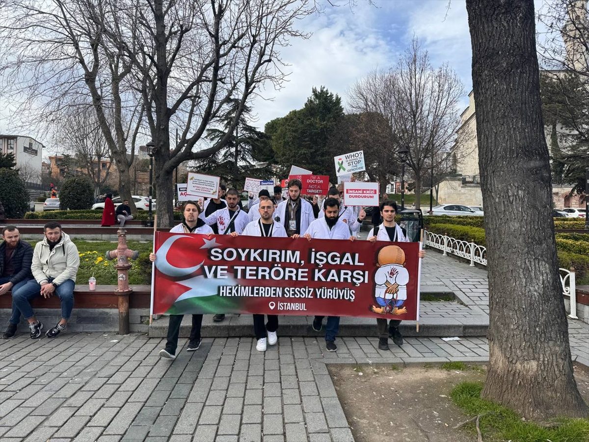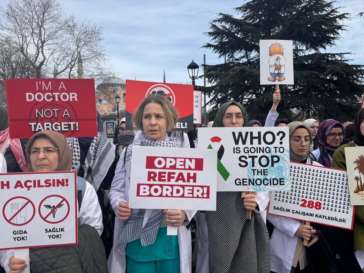 شارك عشرات الأطباء والعاملين بالمجال الصحي، السبت 10 فبراير/شباط 2024، في مسيرة بإسطنبول تضامناً مع قطاع غزة الفلسطيني، واحتجاجاً على الهجمات الإسرائيلية، وطالبوا بالوقف الفوري لإطلاق النار.