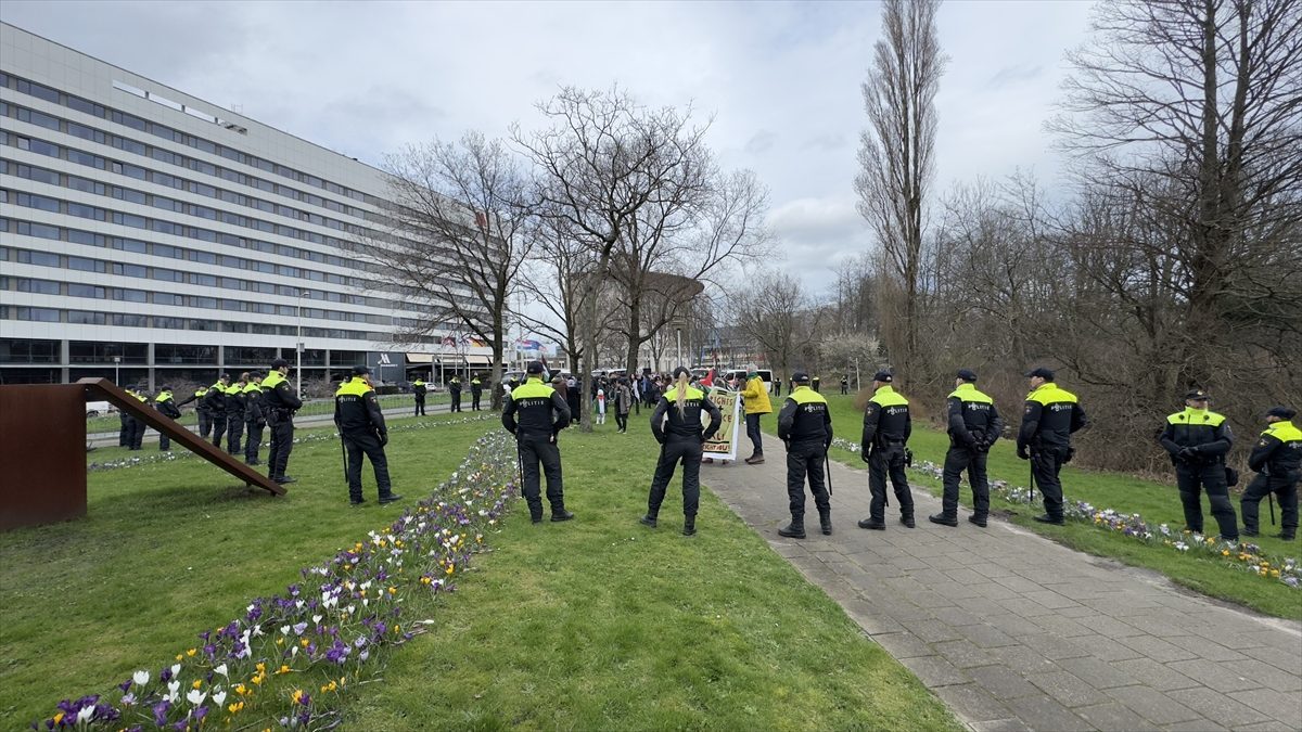 وأحاطت قوات الشرطة المحتجين ومنعتهم من السير باتجاه مبنى البرلمان الهولندي.