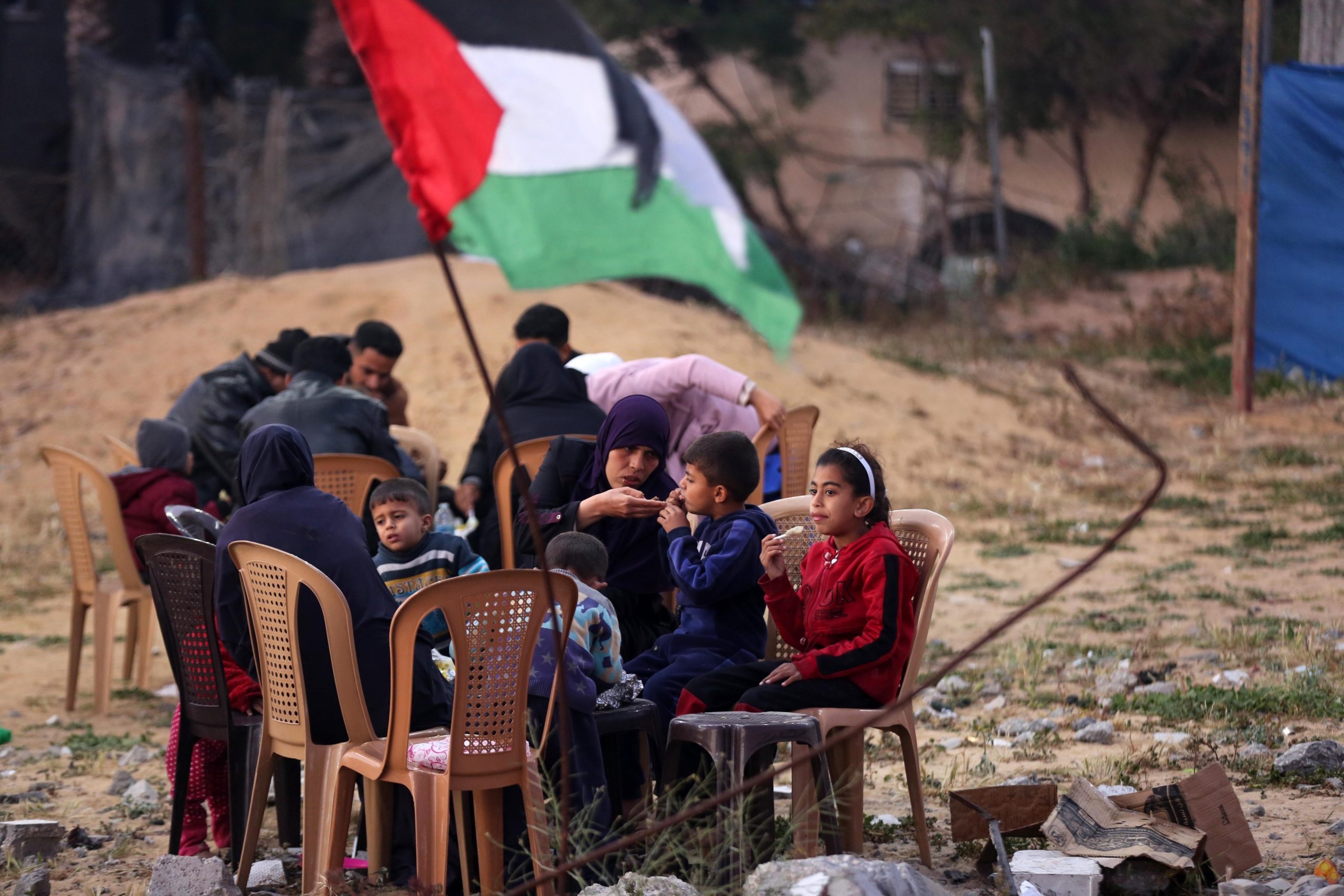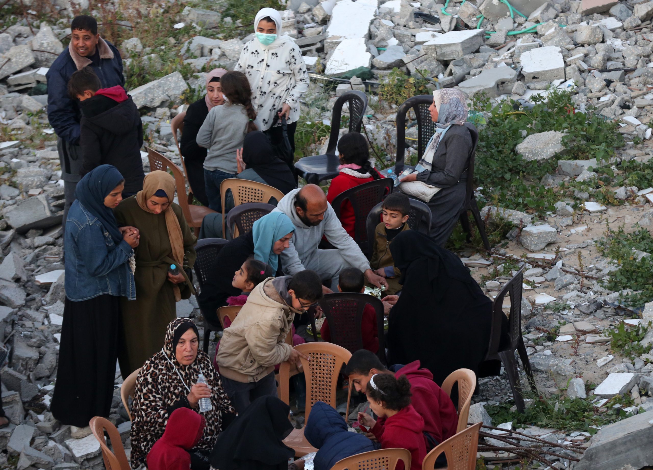 تناولت عائلات فلسطينية في غزة، طعام الإفطار لأول يوم من رمضان، الإثنين، 11 مارس/آذار 2024 على أنقاض منازل دمرتها إسرائيل خلال حربها على القطاع التي دخلت شهرها السادس دون النجاح بالتوصل لاتفاق وقف إطلاق نار قبل حلول الشهر المبارك، وبين الأطلال في مدينة رفح جنوبي قطاع غزة، افترشت عشرات العائلات الفلسطينية موائد الطعام، رغم الظروف الصعبة التي يواجهونها في ظل الحرب.